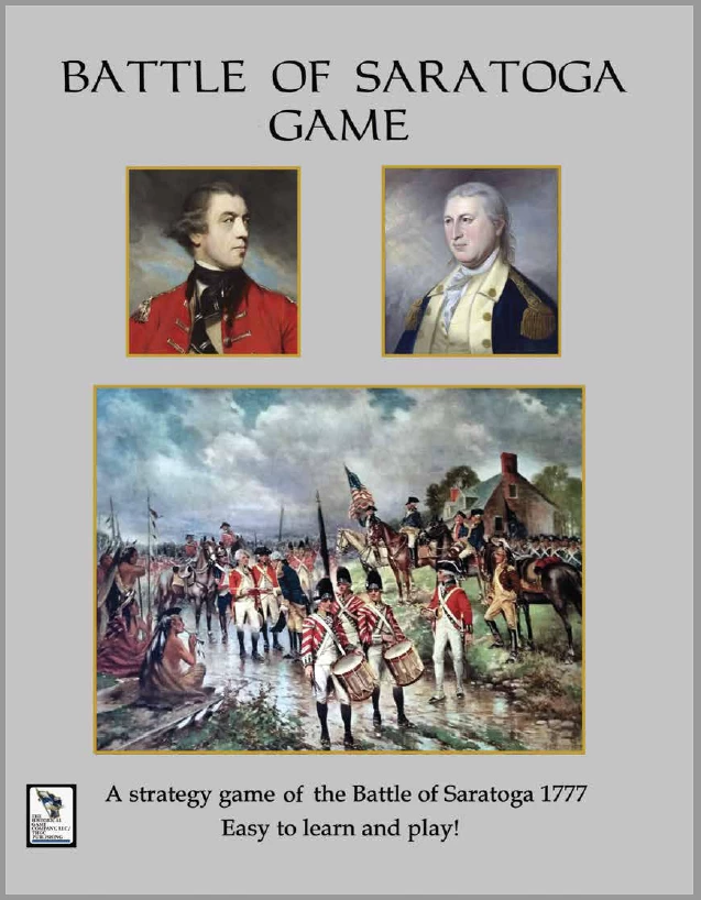 The Battle of Saratoga Game is a low to moderate complexity tactical game covering the British attempt to break through the American lines. The game takes about 90 minutes to play. One player commands the British and their Hessian mercenaries and the other player commands the American forces. Cards allow a variety in play.