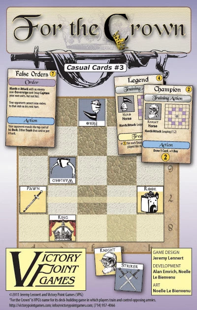 In this game that combines the highly popular ‘deck-building’ mechanic with the most engrossing variations of Chess, do you have what it takes to wisely divide your attention between preparations and military maneuvering? To outpace your opponent’s development while eluding capture? Strategize your position and seize glory in For the Crown!