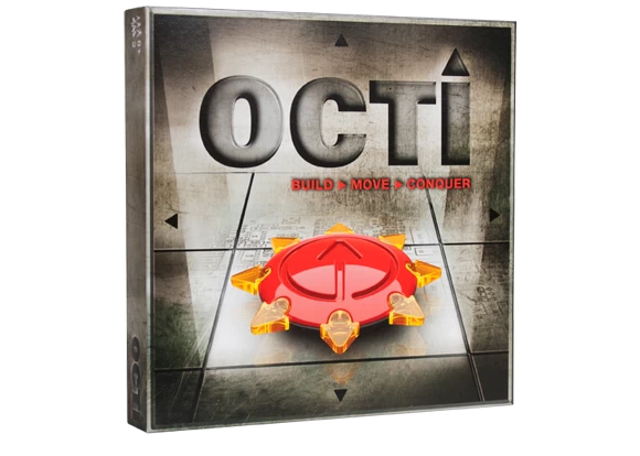 Octi is an abstract strategy that is similar to checkers and chess. The object of the game is move your pieces into your opponent’s starting points. The difference between checkers and Octi is that this game allows for multiple jumping, capturing, and special movement of pieces. On each move players decide whether to bring in new pieces, upgrade their existing pieces, or move a piece. The choices in this game are staggering and each move presents and entire new way of thinking about the game. There is a 4 player teams variant that is included in the rules.