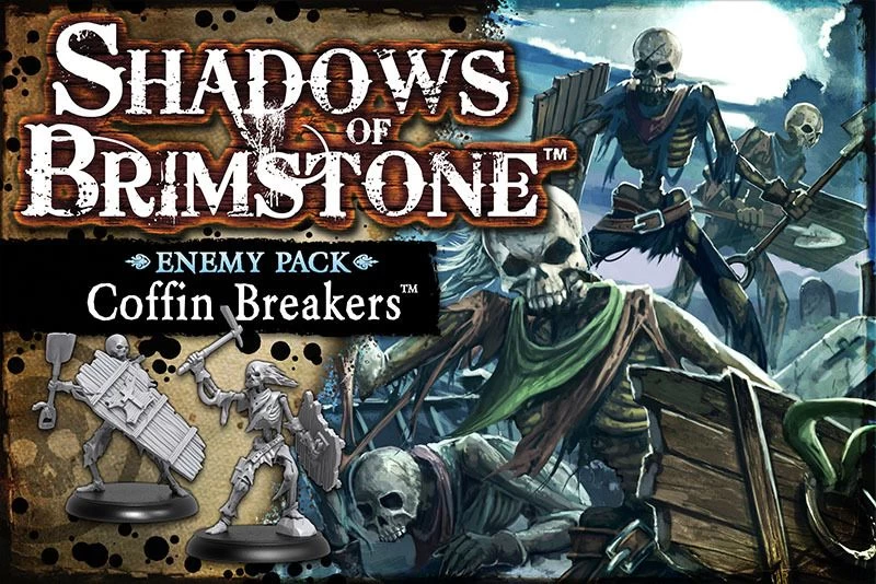 This Enemy Pack contains everything you need to battle the ghastly Undead Coffin Breakers. Included are 6 Coffin Breaker models, the large Enemy Record Sheet for them, and all of the Threat Cards needed to add them to your games of Shadows of Brimstone.