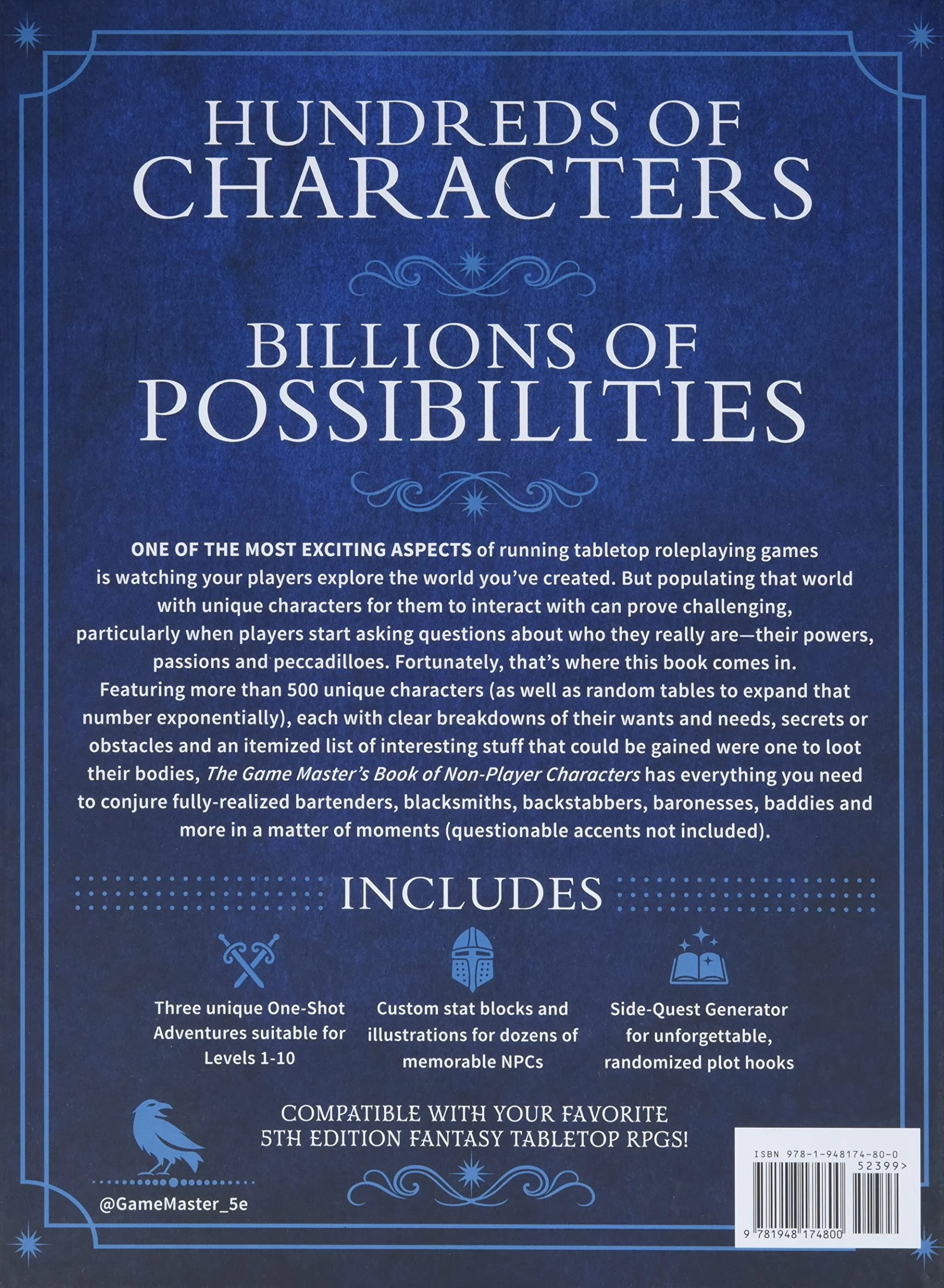 From the #1 Best-Selling author, Jeff Ashworth, comes the latest addition to The Game Master series, with more than 500 NPCs ready to populate your campaign whenever you need them!