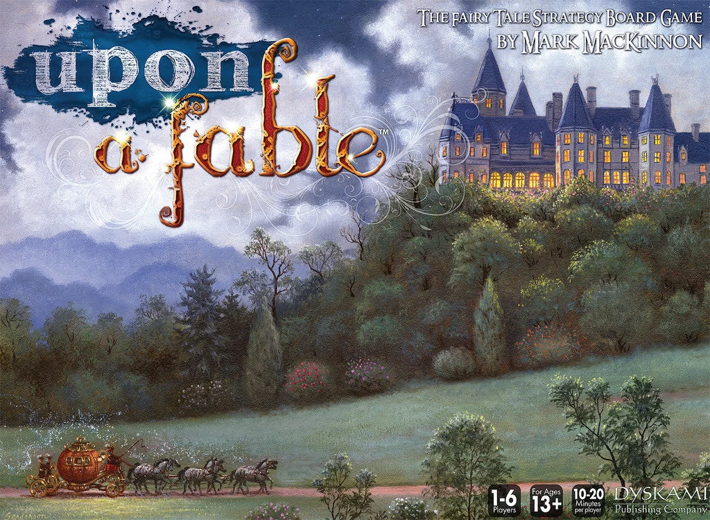 In Upon a Fable, players assume the role of a grand ruler in the fairy tale lands and start the game with one Small Realm (the Home Realm) overseen by a loyal Fable subject. During the nine game rounds, each ruler seeks to expand their fortunes through a variety of methods, including: adding more Small Realms to gain the support of more Fables (which in turn, grant additional game actions each round); expanding the size and influence of their realms, from Small to Large to Epic; playing Ever After cards that influence the flow of the game; and gathering the valuable fairy tale Wonders of Magic, Love, Honour, Followers, and Castles. None of these paths to greatness can be ignored, for only the most well-rounded ruler without weakness in any domain shall be granted victory over the others and awarded the title of High Emperor or Empress.