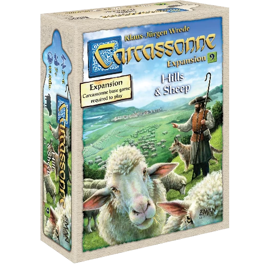 Carcassonne: Hills & Sheep is the ninth numbered expansion for the Carcassonne base game, and now players get to be shepherds on the hills in addition to the usual thieves, knights, monks and farmers. By placing the tiles in this expansion, players build hills and vineyards, trying to plan ahead to claim the sweetest meadows for points — bringing sheep and shepherds while keeping watch for the wolf that waits to be drawn among the tiles…